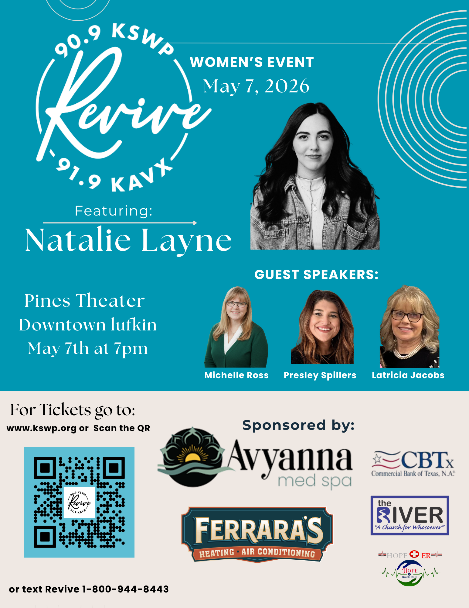 Revive Women’s event is Thursday, May 7th at the Pines Theatre in downtown Lufkin.
